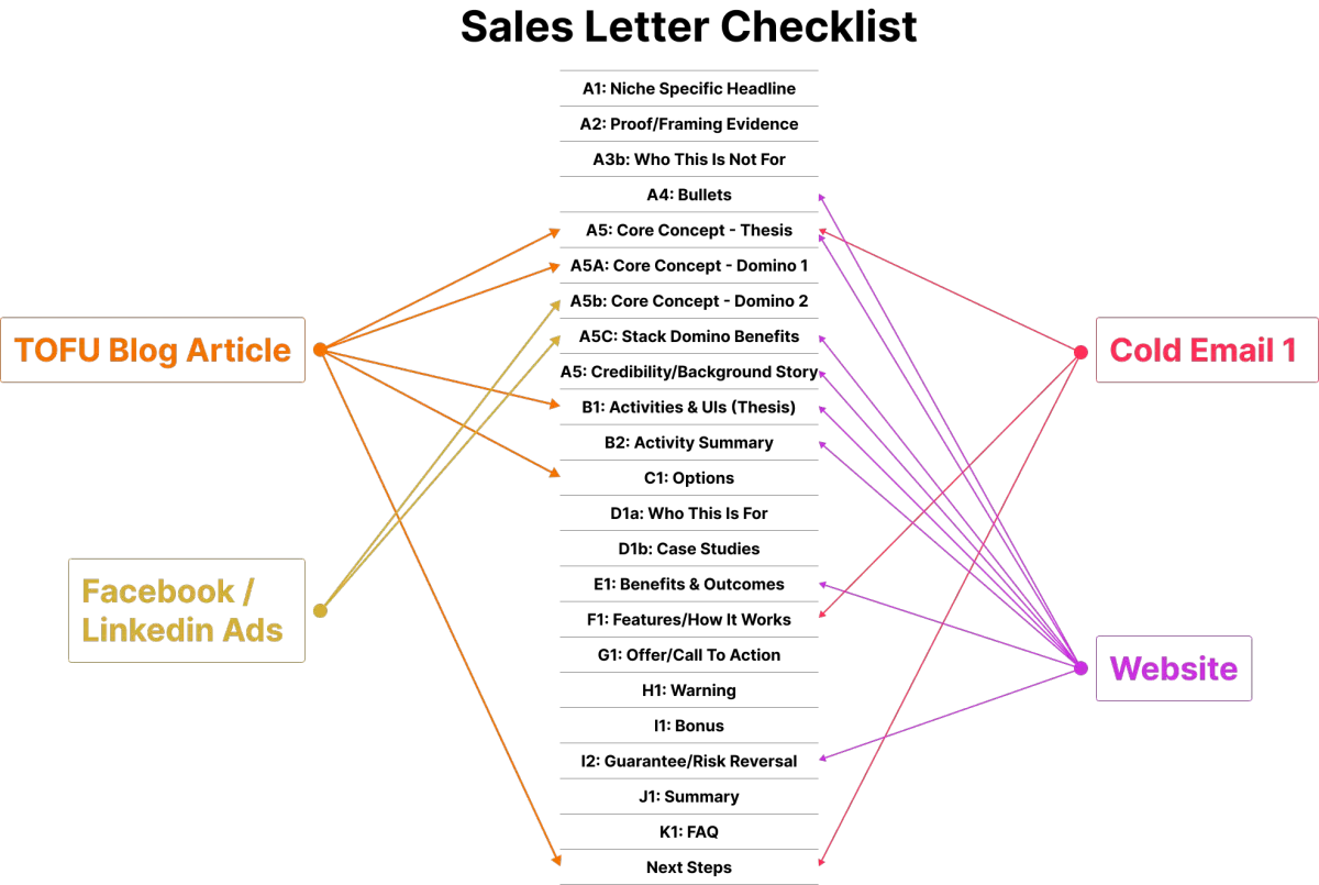 Principle 8: All demand generation content derives from the sales letter, ensuring consistency across touchpoints.